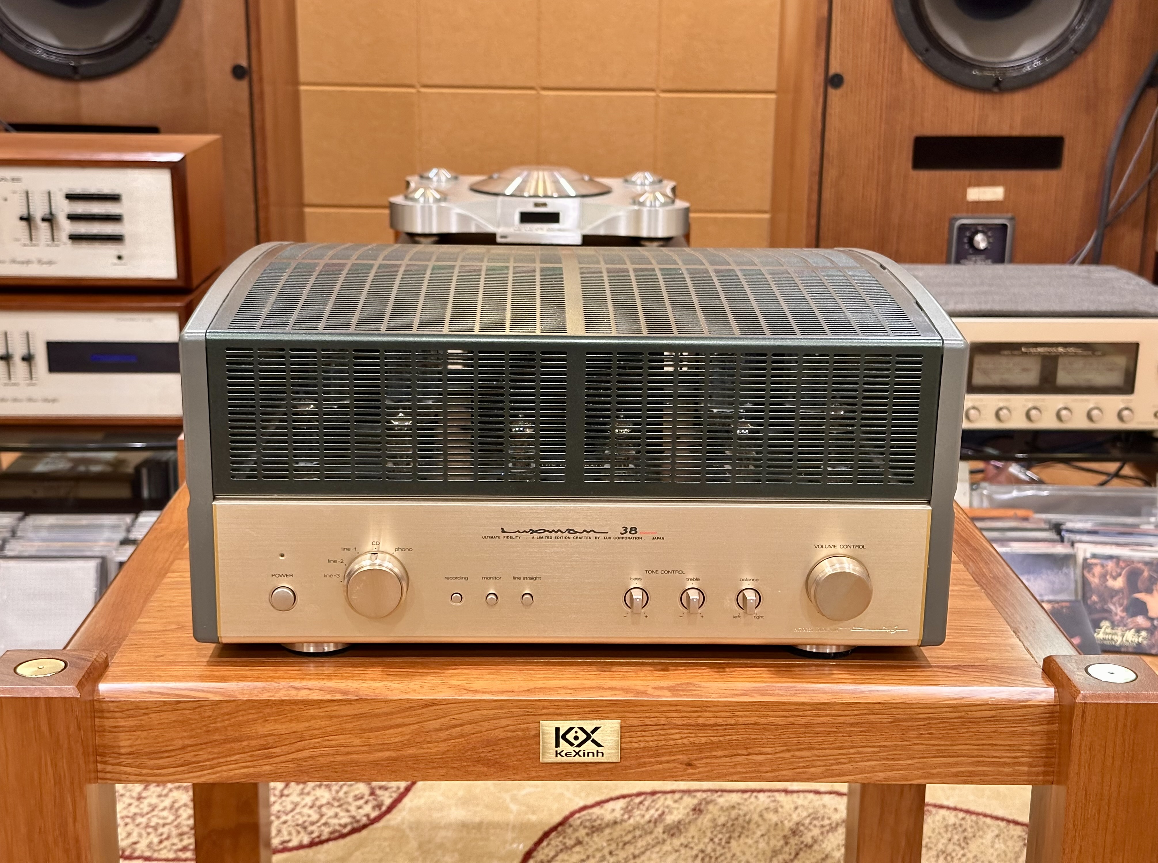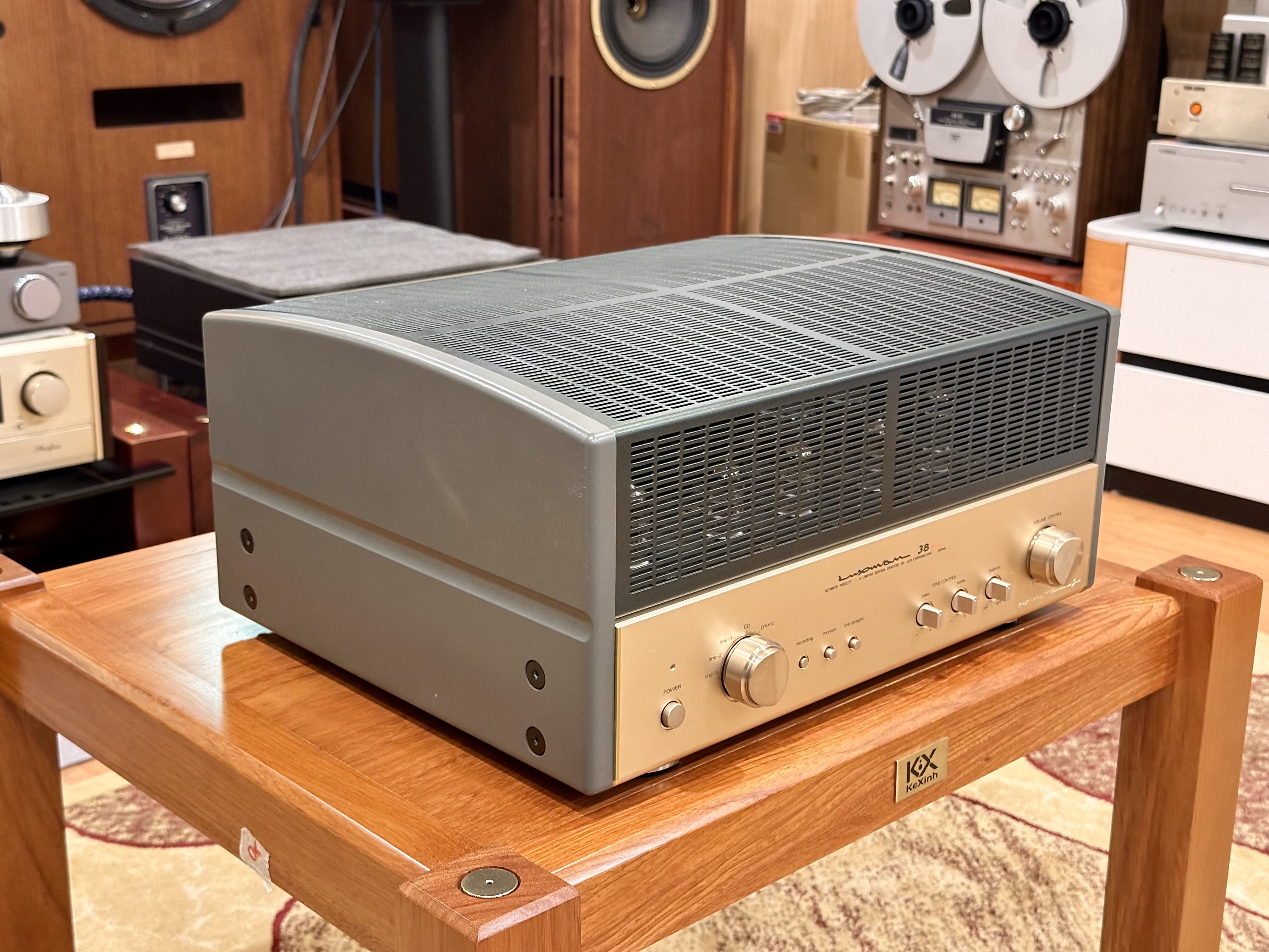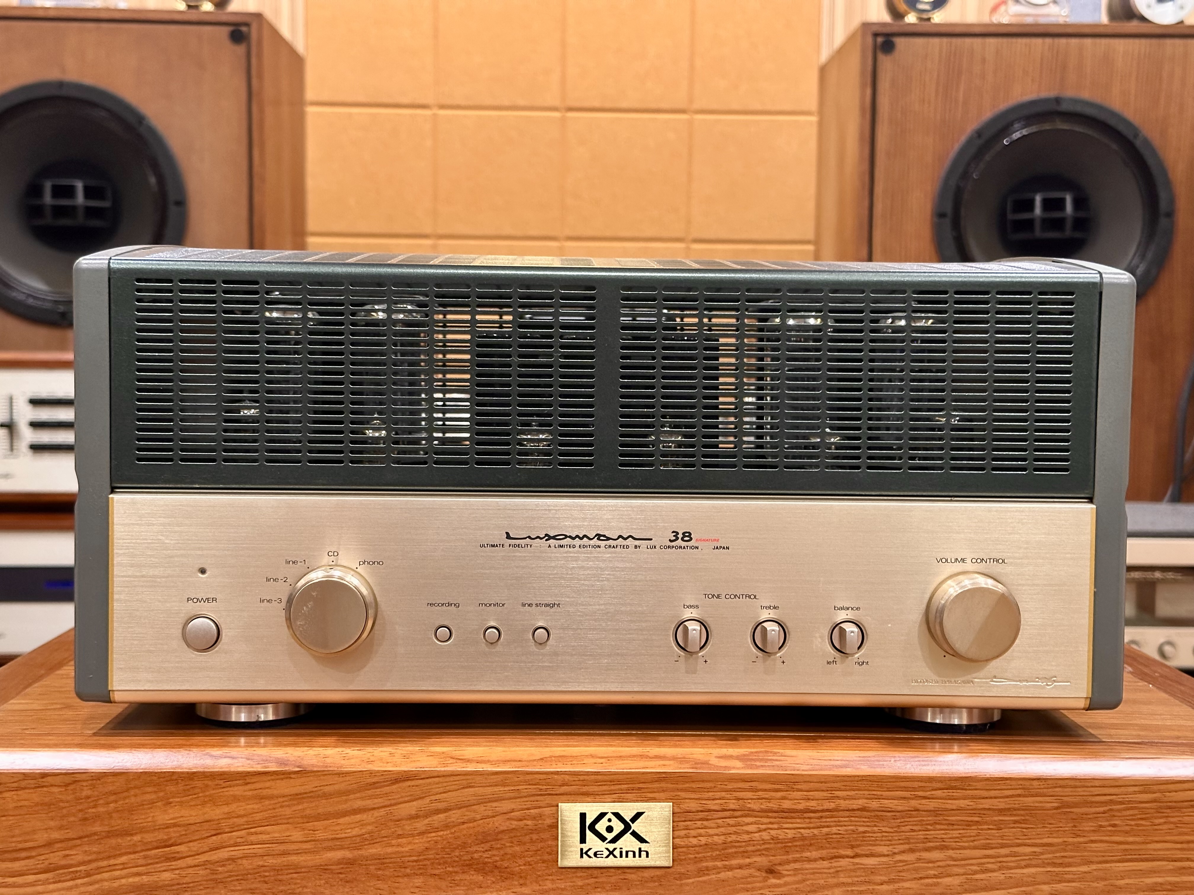 Ampli Luxman SQ-38Signature dòng chữ ký. tình trạng còn rất đẹp gần như mới, din nguyên bản chưa sửa chữa. Bóng đèn din theo máy. Ampli chạy 4bóng EL34 cho công suất 30w/ch rất dễ ghép kê cả những dòng loa có độ nhạy thấp. Ampli có thiết kế mạch chỉnh treble, bass rất tiện cho việc tăng hoặc giảm biên độ dải bass dải treble.