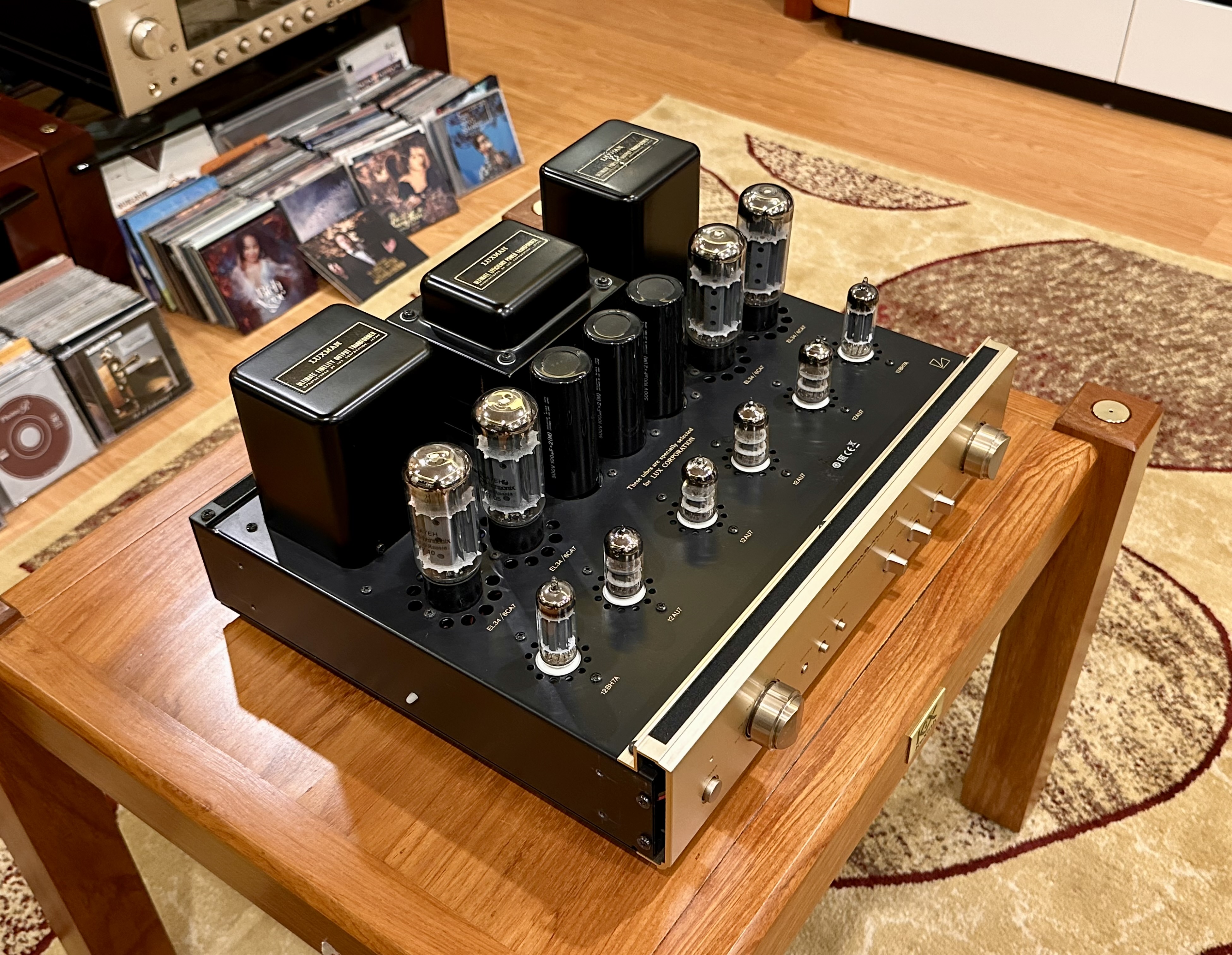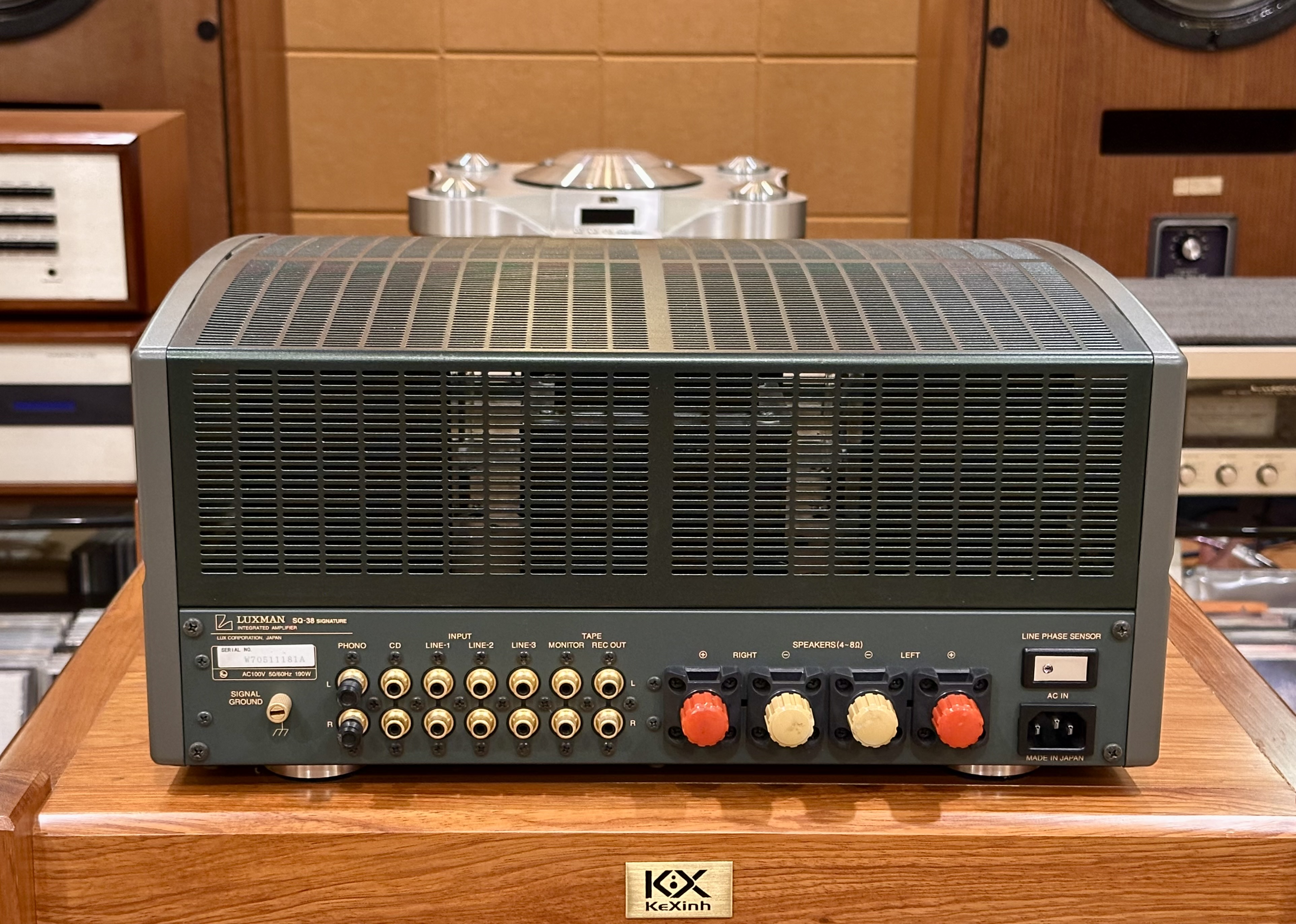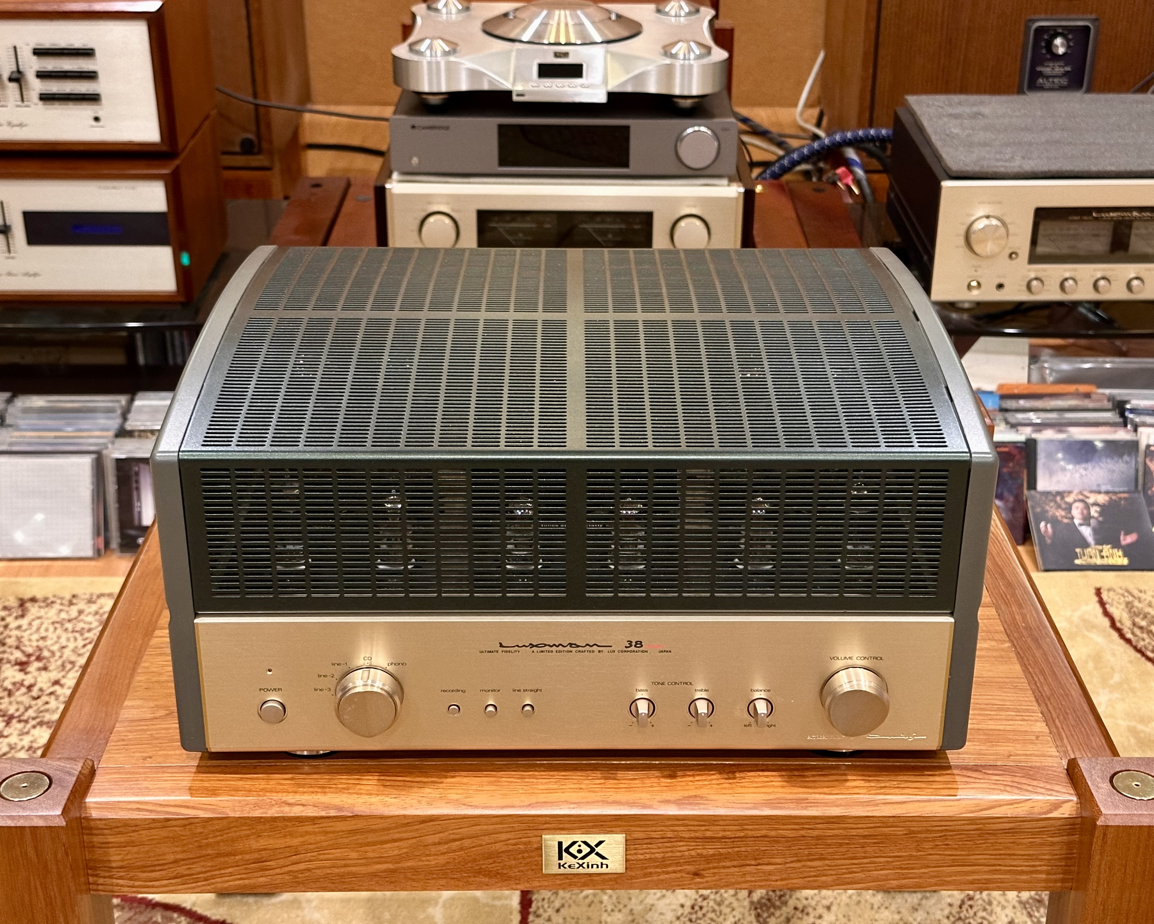 Ampli Luxman SQ-38Signature dòng chữ ký. tình trạng còn rất đẹp gần như mới, din nguyên bản chưa sửa chữa. Bóng đèn din theo máy. Ampli chạy 4bóng EL34 cho công suất 30w/ch rất dễ ghép kê cả những dòng loa có độ nhạy thấp. Ampli có thiết kế mạch chỉnh treble, bass rất tiện cho việc tăng hoặc giảm biên độ dải bass dải treble.
